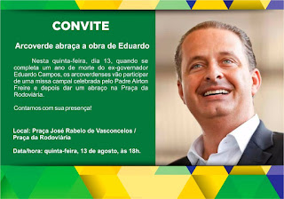 Nesta quinta-feira, dia 13, quando se completa um ano da morte do ex-governador Eduardo Campos, os arcoverdenses vão participar de uma missa campal celebrada pelo padre Airton Freire e depois dar um abraço na Praça da Rodoviária.